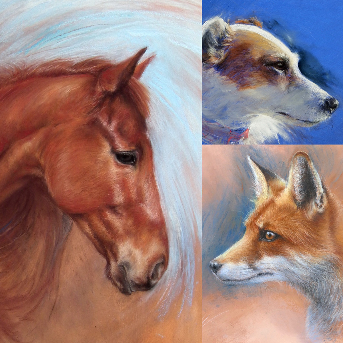 In this workshop Rebecca will show how to sketch in the structure of an animal’s head, and then demonstrate different techniques with pastel media to create the textures of the coat, eyes and muzzle. There will bea variety of photographic reference to use to draw from, including dogs, horses and some wild animals. Suitable for all abilities.